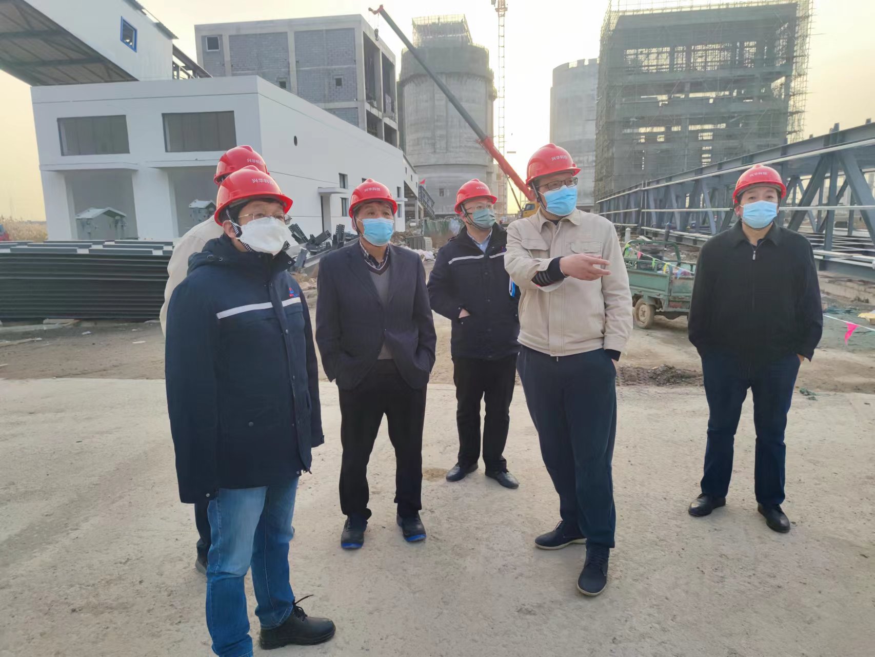 12月13日下午,董事長(zhǎng)趙祥海攜集團(tuán)行政總監(jiān)王紹高一行到興華科技公司視察指導(dǎo)工作,總經(jīng)理卓士彬、常務(wù)副總經(jīng)理李國(guó)安等公司主要領(lǐng)導(dǎo)陪同并分別向董事長(zhǎng)介紹了項(xiàng)目建設(shè)進(jìn)度、生產(chǎn)準(zhǔn)備工作和工藝技術(shù)情況。在施工現(xiàn)場(chǎng)考察后,董事長(zhǎng)還組織合成、聯(lián)堿等項(xiàng)目部主要負(fù)責(zé)人員召開(kāi)專題會(huì)議討論生產(chǎn)準(zhǔn)備和技術(shù)經(jīng)濟(jì)有關(guān)問(wèn)題。董事長(zhǎng)在會(huì)議中指出,興華科技公司建設(shè)和生產(chǎn)準(zhǔn)備工作的核心要求就是產(chǎn)品質(zhì)量做到最好、水電氣等各項(xiàng)平衡達(dá)到最優(yōu)、公司經(jīng)濟(jì)效益達(dá)到最高,達(dá)到裝置生產(chǎn)效率最大化。