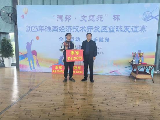 為進一步加強經(jīng)開區(qū)各基層工會交流互動,凝聚高質(zhì)量發(fā)展的強大合力,4月18日下午,為期5天的“德邦·文庭苑”杯2023年淮南經(jīng)濟技術(shù)開發(fā)區(qū)籃球友誼賽在區(qū)消防大隊籃球館舉辦。此次活動由淮南經(jīng)濟技術(shù)開發(fā)區(qū)總工會、社會發(fā)展局主辦,安徽德邦化工有限公司、開發(fā)區(qū)消防救援大隊協(xié)辦,比賽共有八支代表隊參加。淮南市經(jīng)開區(qū)黨工委委員、紀(jì)檢工委書記朱英魁、安徽德邦化工有限公司黨總支書記劉默海出席開幕式并致開幕詞,安徽德邦籃球隊隊員朱立超代表全體運動員宣誓。 在比賽過程中,各參賽隊伍秉承“友誼第一、比賽第二”的原則,充分展現(xiàn)了“更高、更快、更強”的體育精神。他們在賽場中頑強拼搏,奮力爭先,以高昂的斗志,高超的球藝,賽出了風(fēng)格,賽出了水平,賽出了友誼。經(jīng)過五天的激烈角逐,安徽德邦籃球隊在小組賽中以第一名的成績出線,并在4月22日的總決賽中獲得亞軍。淮南市經(jīng)開區(qū)黨工委委員、紀(jì)檢工委書記朱英魁、安徽德邦化工有限公司黨總支書記劉默海為獲獎隊伍頒發(fā)獎杯和獎金。 此次籃球賽不僅展現(xiàn)公司籃球隊積極向上的精神風(fēng)貌,同時也增進了球員的凝聚力和戰(zhàn)斗力,培養(yǎng)了大家的集體榮譽感,也加強了園區(qū)內(nèi)企業(yè)之間的相互交流,更體現(xiàn)了德邦人敢為人先,爭創(chuàng)一流的企業(yè)精神。