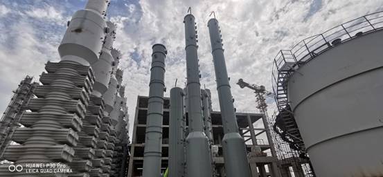 七月的驕陽似火,興華科技公司聯堿現場的設備安裝也正在經受這盛夏的考驗,炎熱的天氣,擋不住興華科技員工的工作熱情,經過前期的精心準備,由三門峽化機制造的聯堿大型塔器碳化尾氣凈氨塔、濾過尾氣洗滌塔、濾過尾氣凈氨塔、和淡液蒸餾塔以及煅燒爐氣洗滌塔等塔陸續進廠,經過相關部門領導的統籌協調,分兩次將7臺大型塔器全部安全吊裝到位,至此聯堿重堿現場的所有塔器全部安裝完成,為下一步的管道安裝打下了堅實的基礎。